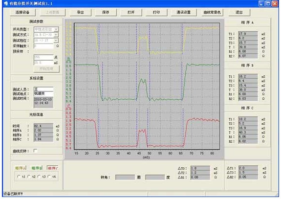 2010年3月10日,公司技术支持人员配合用户,在钱潮变110KV变电所进行了SZ11-20000/110有载分接开关、变比测试,现将测试记录上传到PC机。