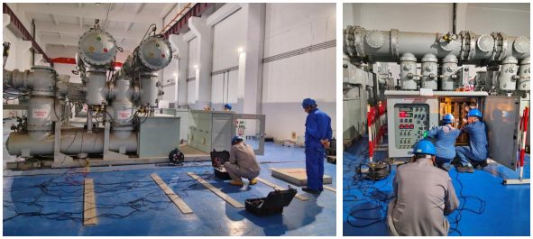 公司技术人员应某发电厂要求,在免拆接地刀排情况下,针对两台220kV室内GIS开关设备,使用自主研制的CT8009高压开关动特性测试仪,采用双端接地测试法,分别对两台LW24-252/T4000-50(G)型号的GIS断路器进行了特性测试,同时也做了传统法测量数据的对比,试验数据高度吻合,进一步验证了双端接地测试法的可靠性,同时大大提升了试验现场人员检修测试的安全性和工作效率。