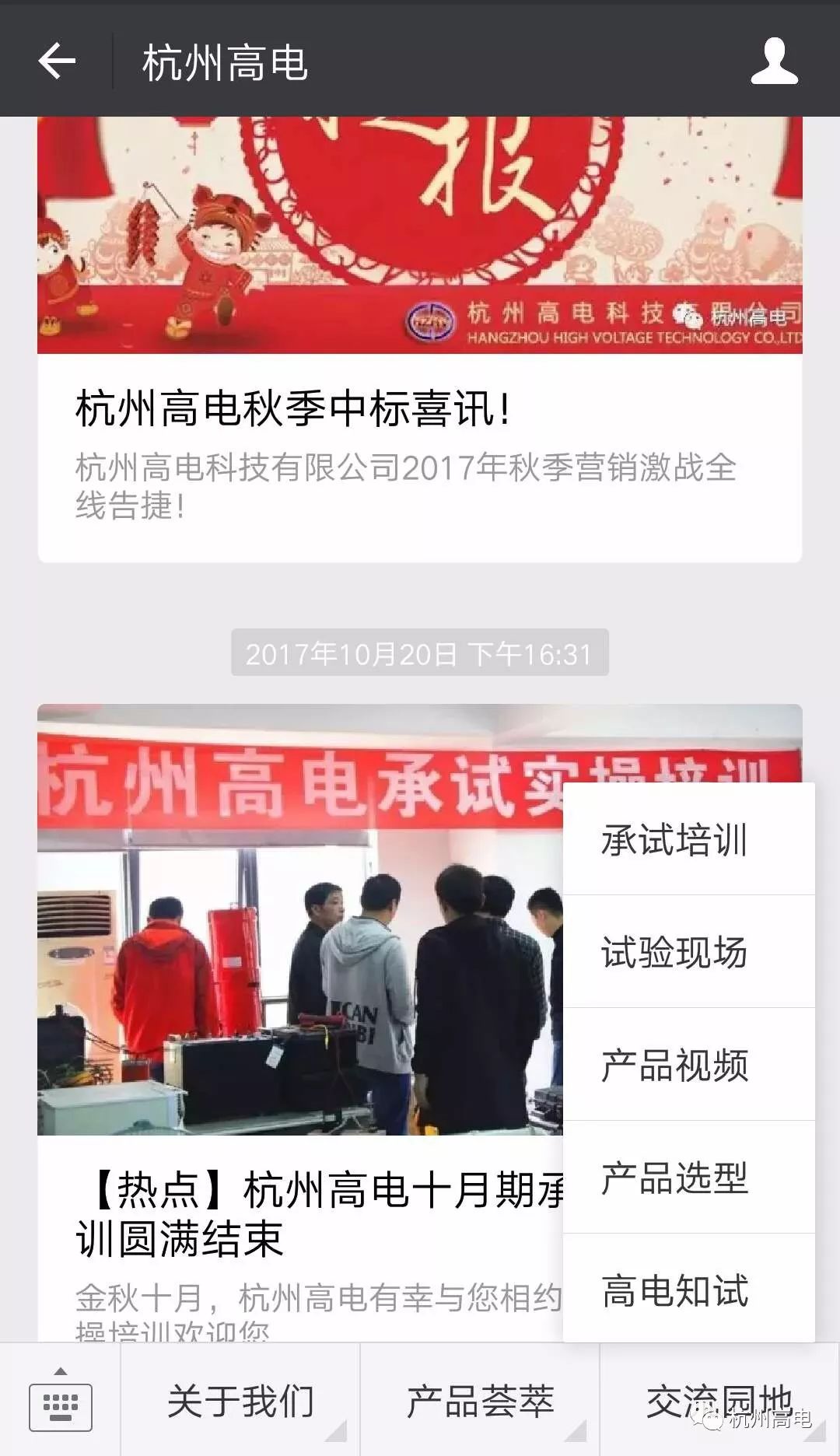 全新版块“交流园地”!下辖“承试培训”、“试验现场”、“产品视频”、“产品选型”、“多多28知试”。各期承试实操学员风采展、现场试验展现第一手行业服务动态、动态视频手把手教学,仿佛一对一专业指导、更多产品选型,满足您不同需求、多多28知试,您贴身的充“电”站。