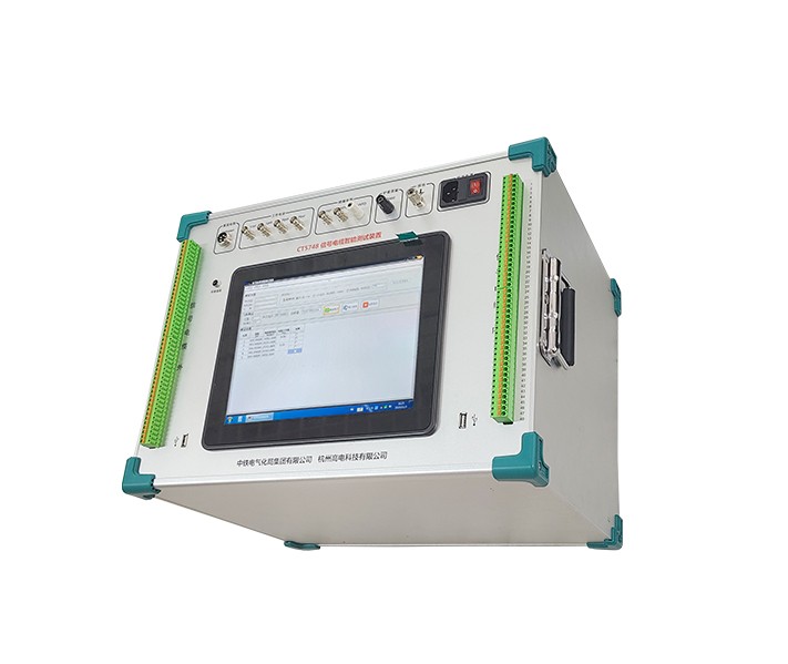 信号电缆自动测试装置包括直流电阻测试模块、绝缘电阻测试模块、工作电容测试模块、电源供电模块、控制模块、一体微电脑显示屏、接驳模块(与被测电缆进行连接的连接装置),一体微电脑显示屏采用WINDOWS操作程序,预存全规格信号电缆测试记录表格,测试时打开相应的测试表格,在表格中输入电缆盘号、型号、长度,按下对应测试项目按钮,可控制切换输出直流电阻、电容、绝缘电阻模块测试信号,通过接驳模块WAGO接线端子接到信号电缆盘两端,按照接线顺序自动测量并填入表格,测试数值能自动存储、导出。测试前先试用电缆测距仪测出总长度。