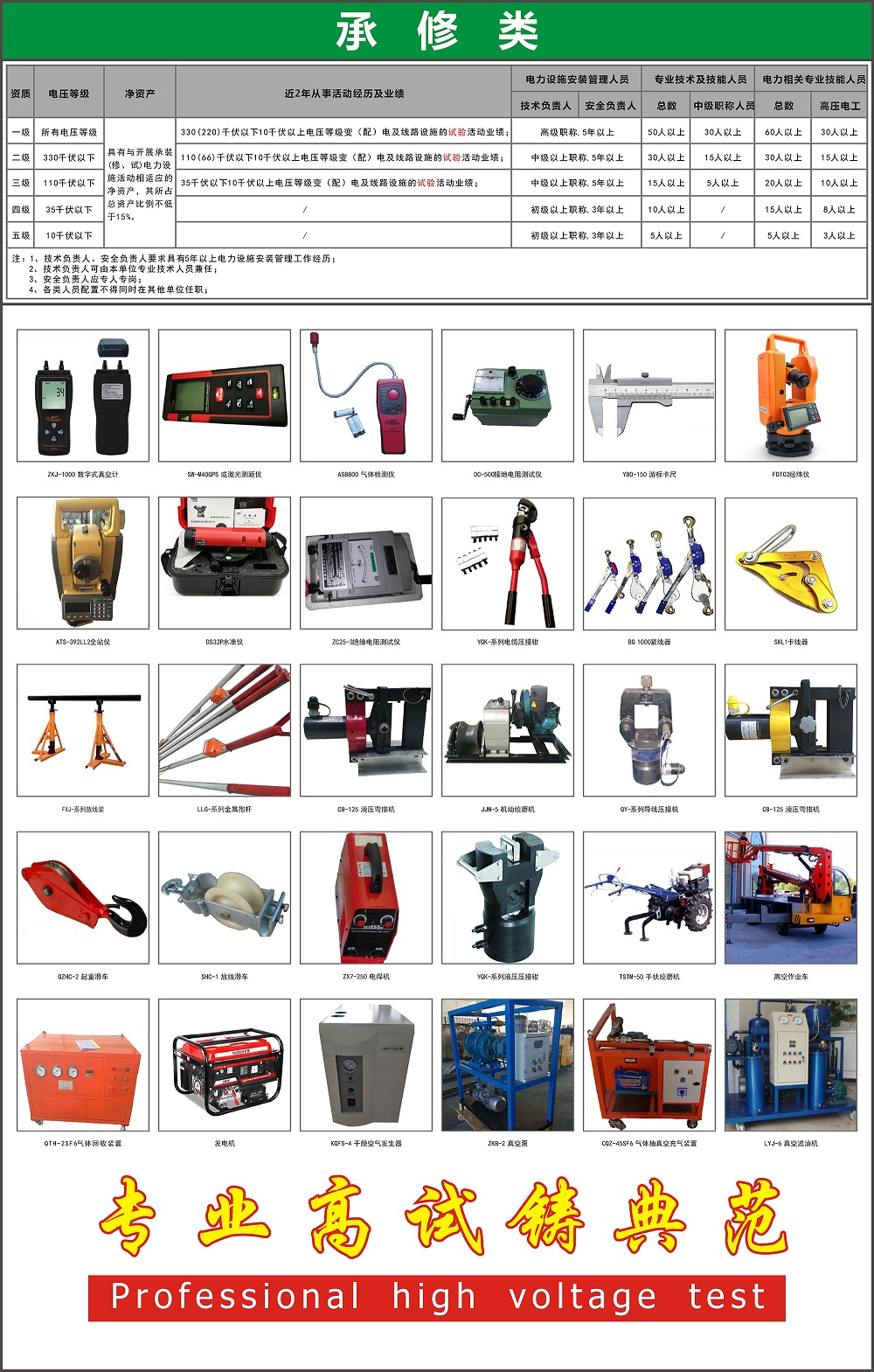 四级:35千伏以下 | / | / | 初级以上职称,3年以上 | 10人以上 | / | 15人以上 | 8人以上 | |