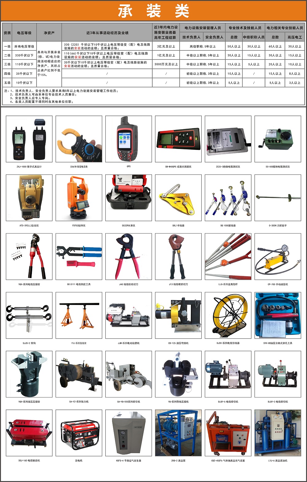 资质/电压等级 | 近3年从事活动经历及业绩 | 近3年内电力设施安装业务最高年工程结算(仅承装类要求) | 电力设施安装管理人员 | 专业技术及技能人员 | 电力相关专业技能人员 | |||