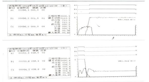 我司技术服务人员于2014年05月16日,前往杭钢集团水电厂,使用CT2009高压开关动特性测试仪,对ZN17-10G型固定式真空断路器进行了机械特性试验,现场测试数据稳定、可靠,符合出厂试验断路器机械特性参数值。具体现场试验数据及安装示意如下: