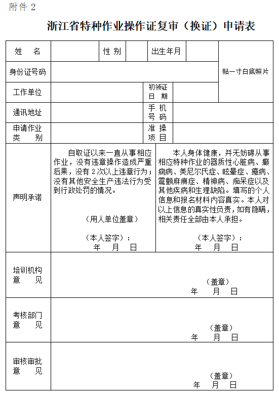 1. 浙江省特种作业操作证(换证)申请表(附件2)