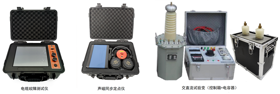 其主要用于电力电缆开路、短路、接地、低阻、高阻闪络性及高阻泄漏性故障的测试,以及同轴通信电缆和市话电缆的开路、短路故障的精确测试;还可以电波测速、测定线缆长度。该系统主要包含:电缆故障测试仪、声磁同步定点仪、高压试验电源(变压器+操作箱+电容器)四部分。