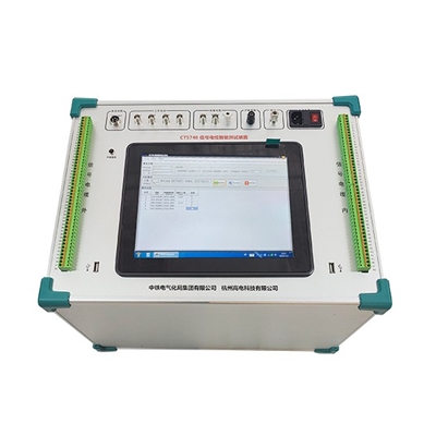 信号电缆自动测试装置包括直流电阻测试模块、绝缘电阻测试模块、工作电容测试模块、电源供电模块、控制模块、一体微电脑显示屏、接驳模块(与被测电缆进行连接的连接装置),一体微电脑显示屏采用WINDOWS操作程序,预存全规格信号电缆测试记录表格,测试时打开相应的测试表格,在表格中输入电缆盘号、型号、长度,按下对应测试项目按钮,可控制切换输出直流电阻、电容、绝缘电阻模块测试信号,通过接驳模块WAGO接线端子接到信号电缆盘两端,按照接线顺序自动测量并填入表格,测试数值能自动存储、导出。测试前先试用电缆测距仪测出总长度。
